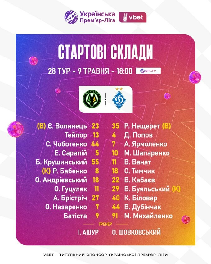 Матч 28-го туру чемпіонату України відбудеться 9 травня о 18:00