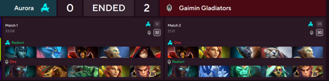 Перша карта видалася досить легкою для Gaimin Gladiators. У другій все було інакше, постійні гойдалки, але GG все ж вдалося знести Aurora Gaming. Знадобилося аж 81 хвилину.