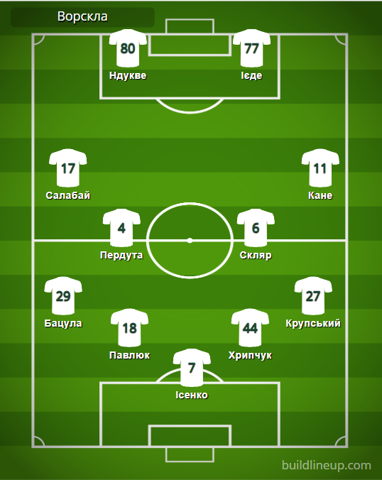 «Ворскла»: Ісенко – Бацула (Є. Пасіч, 62), Павлюк, Хрипчук, Крупський – Салабай (Островський, 71), Пердута, Скляр, Кане – Ндукве, Ієде (Малиш, 62).