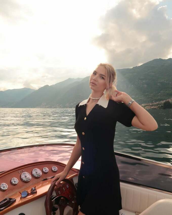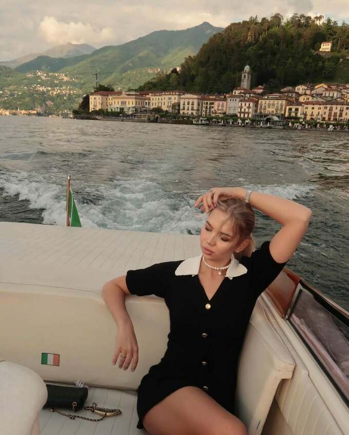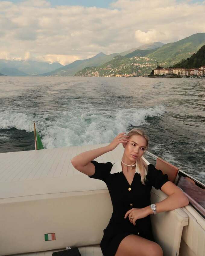 На фото вона – у чорній сукні на човні посеред озера Комо.