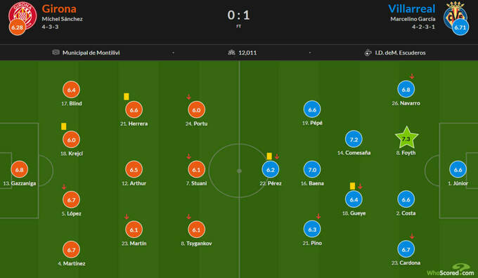 Оцінки матчу «Жирона» – «Вільярреал» від WhoScored