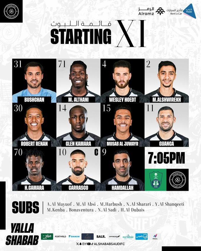 Стартові склади на матч Аль-Шабаб – Аль-Ахлі