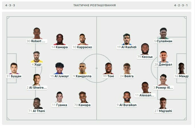 Для Бущана, який грає під 31-м номером, це 9-й матч з моменту переходу до клубу з Ер-Ріяда.
