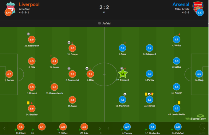 Найкращим за версією обох порталів став нападник гостей Леандро Троссард. на його рахунку 1 асист і оцінки 7.9 і 7.8.