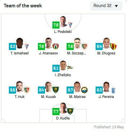 Символічна збірна 32-го туру чемпіонату Польші за версією SofaScore