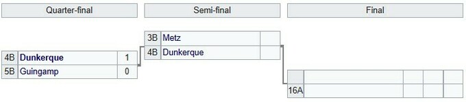 У чвертьфіналі Дюнкерк (4 місце в Лізі 2) переграв Генгам (5-те місце) з рахунком 1:0 і вийшов у півфіналі плей-оф.