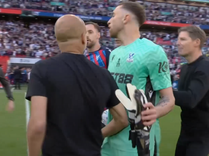 Після завершення фіналу Кубка Англії, який Манчестер Сіті програв Крістал Пелас з рахунком 0:1, тренер Жузеп Гвардіола був явно незадоволений і підійшов до воротаря суперника Діна Хендерсона.