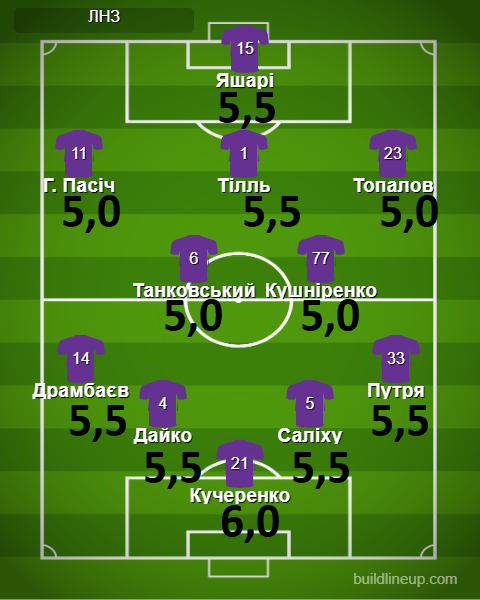 Заміни ЛНЗ: Каплієнко – 5,5, Молло – 5,0, Момо – 5,0, Ейнел – 5,0