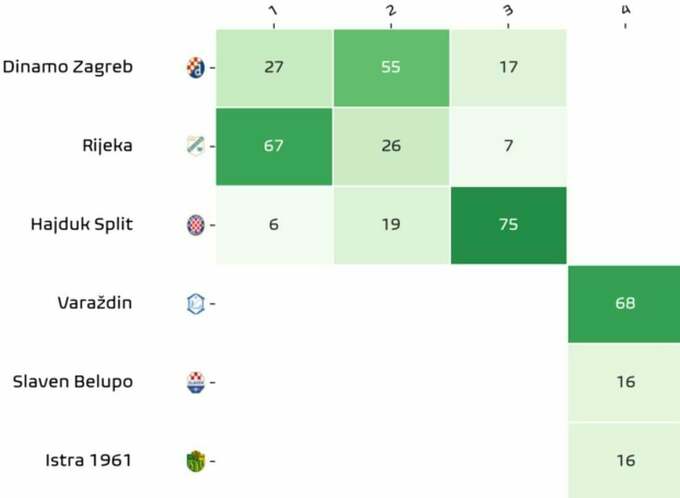 Моделювання: шанси у відсотках на місця у чемпіонаті Хорватії