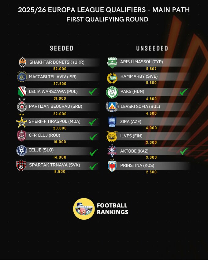 Можливі суперники Шахтаря (стовпчик праворуч) у Q1 Ліги Європи