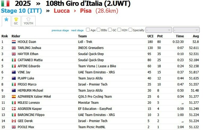 Giro d'Italia 2025. Етап із роздільним стартом виграв Даан Хул