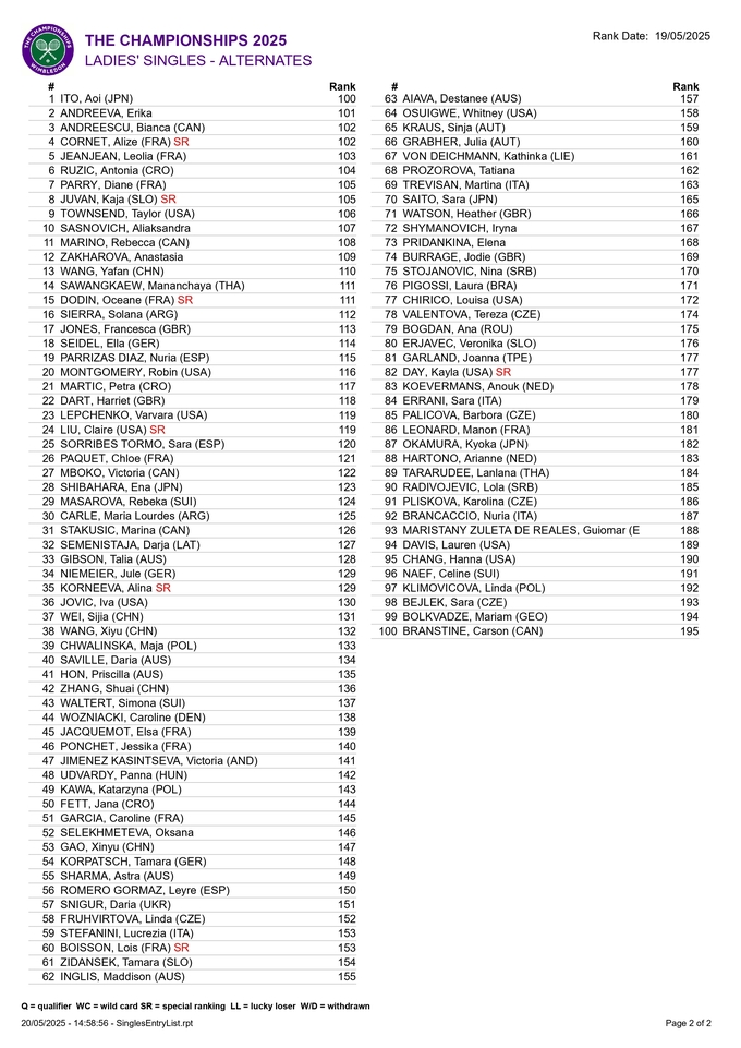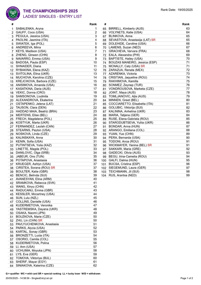 За захищеним рейтингом у Парижі зіграють Сорана Кирстя, Чжу Лінь, Анастасія Севастова, Кеті Макнеллі та Яніна Вікмаєр.