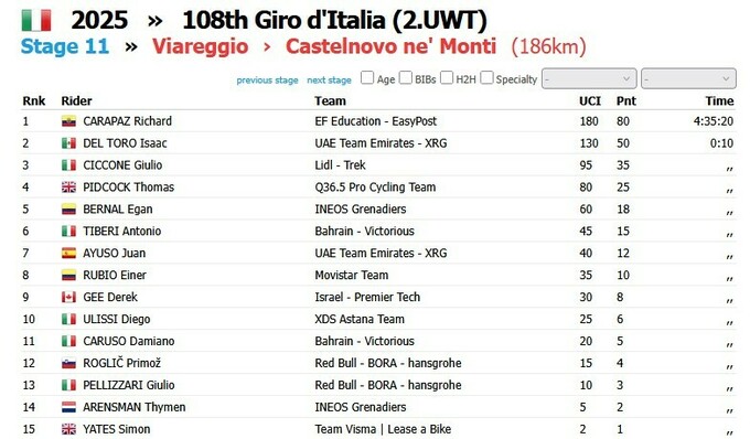 Giro d'Italia 2025. Переможцем одинадцятого етапу став Річард Карапас