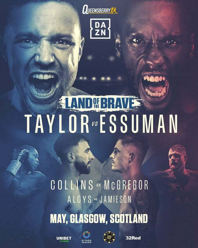 Головною подією стане бій у напівсередній вазі (до 66,7 кг) – на рингу зустрінуться колишній абсолютний чемпіон, шотландець Джош Тейлор (19–2, 13 КО) та уродженець Ботсвани Екоу Ессуман (21–1, 8 КО), який виступає під британським прапором.
