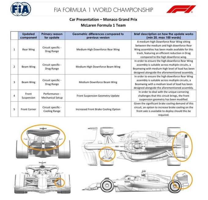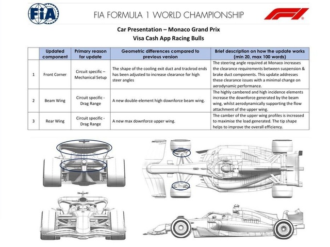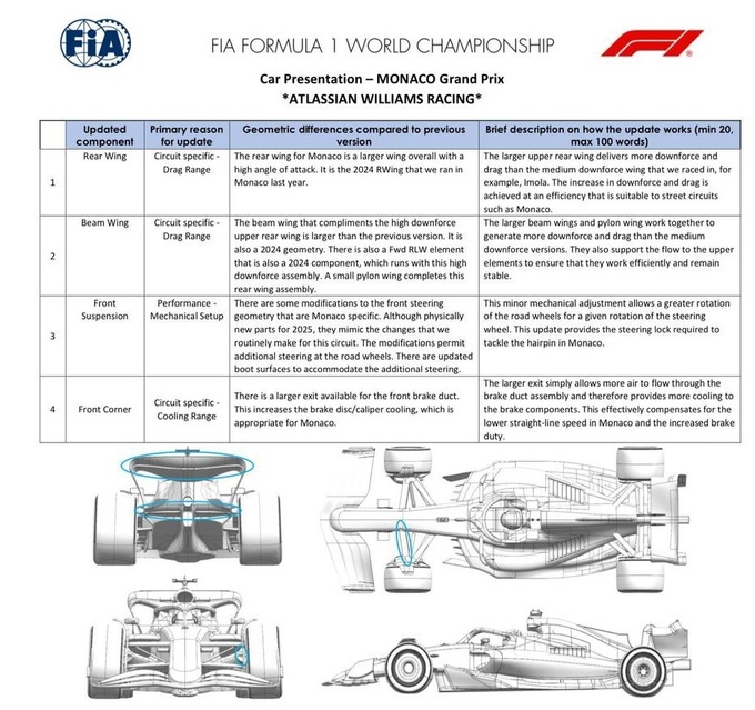 Команда продовжує покращувати свій болід у рамках обраної концепції. До Монако привезено переднє та заднє крила з високою притискною силою, що мають забезпечити стабільність у повільних зв’язках. Також змін зазнали повітроводи та винглети задніх гальм – це може вплинути як на ефективність охолодження, так і на поведінку машини під час гальмування в умовах щільного трафіку.