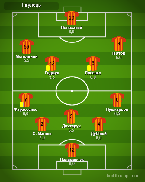 «Інгулець» (заміни): Сад – 6,5, Катрич – 6,0, Кисленко – 6,5, Свистун – 6,0, Лісняк – б/о