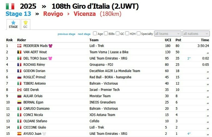 У п'ятницю, 23 травня, пройшов 13-й етап шосейного гранд-туру Giro d'Italia 2025. Перемогу здобув представник команди Lidl-Trek Мадс Педерсен.