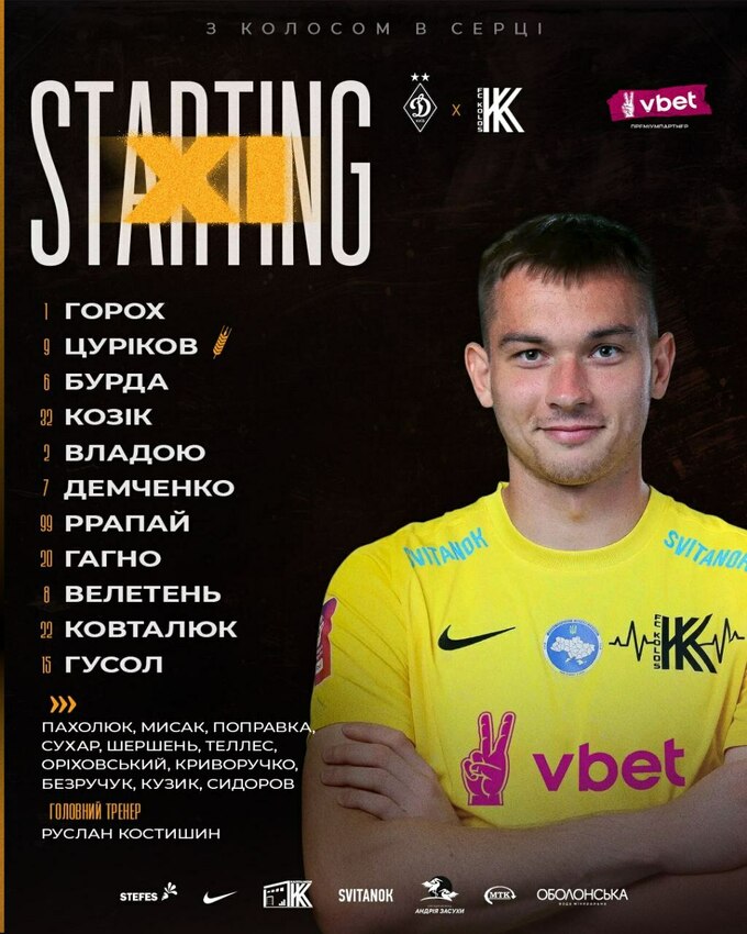 Запасні: Пахолюк, Мисак, Сухар, Шершень, Криворучко.