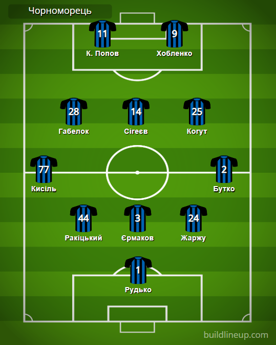 «Чорноморець»: Рудько – Кисіль (Пшеничнюк, 82), Ракіцький, Єрмаков, Жаржу (Кратов, 81), Бутко – Габелок (Мустафаєв, 63), Сігеєв, Когут (Райс, 63) – К. Попов (Безбородько, 46), Хобленко.