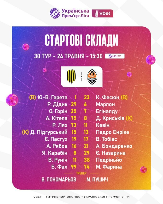 Запасні: Твардовський, Арройо, Швед, Глущенко, Конопля.