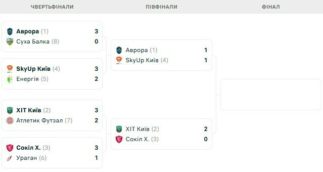 - 12:00. SkyUp Київ – Аврора Київ (рахунок у серії – 1:1)