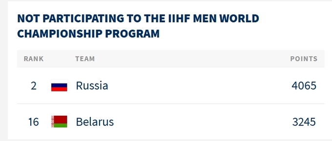 Очікується, що найближчим часом IIHF оновить рейтинг. На офіційному сайті у збірної росії вказані очки, але зазначено, що збірна не бере участі в ЧС.