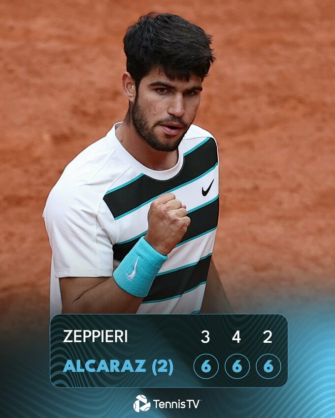 Чинний чемпіон Ролан Гаррос Карлос Алькарас (ATP 2) з перемоги розпочав виступ на Відкритому чемпіонаті Франції 2025, який проходить на ґрунтових кортах у Парижі.