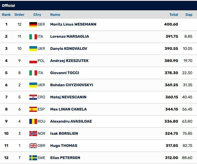 - 1. Моріц Веземанн (Німеччина) – 400.60