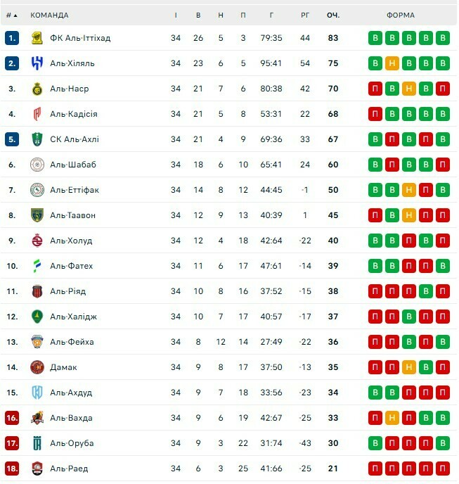 Підсумкова таблиця. Аль-Наср програв з голом Роналду, але посів третє місце