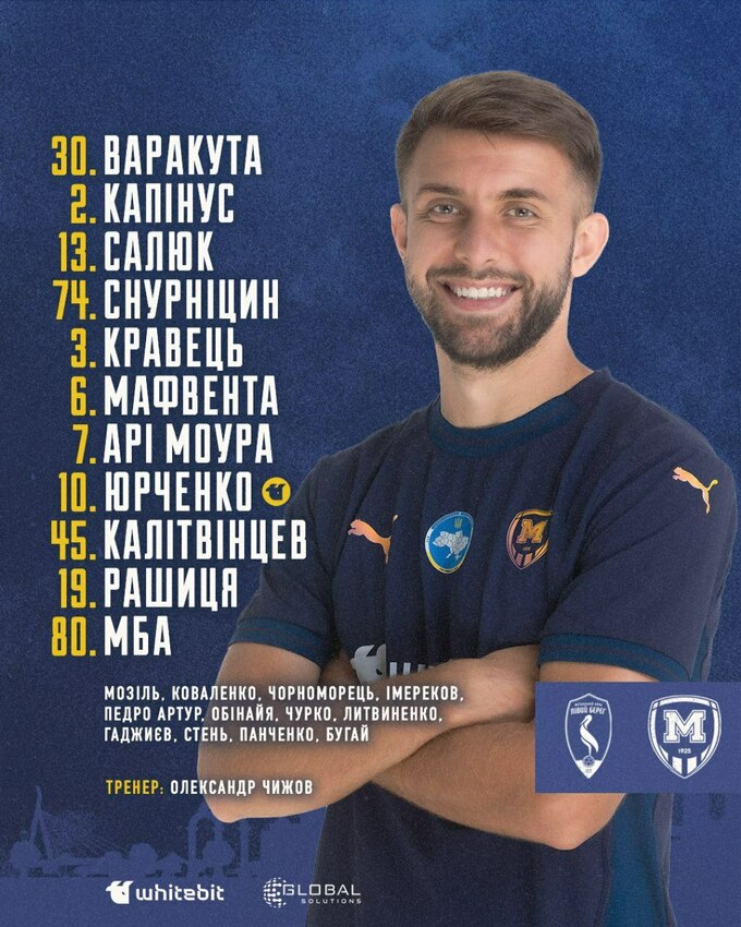 Запасні: Мозіль, Коваленко, Імереков, Артур, Обіная, Стень, Панченко.