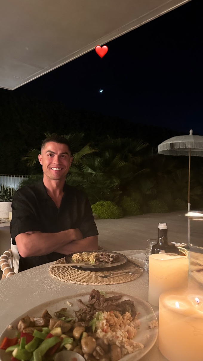 Джорджина опублікувала в Instagram фото з вечері при свічках, де Роналду посміхається за столом на тлі нічного неба з місяцем.