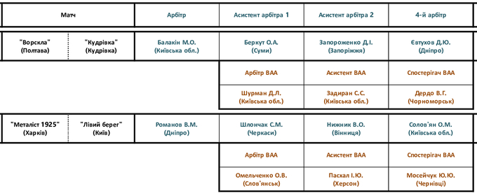 - Суддя VAR – Денис Шурман (Київська обл.)