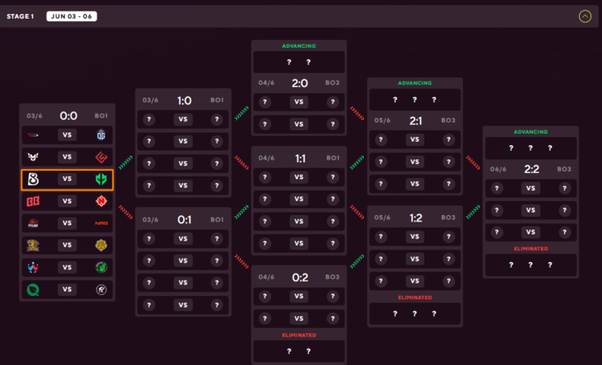 B8 знають поки що тільки першого опонента, наступні їхні суперники визначатимуться за підсумками їхніх матчів і результатами інших команд. Головними фаворитами першого етапу можна вважати HEROIC, Complexity, bb team і OG.