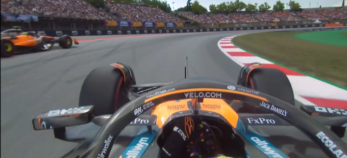 Під час першої спроби Норріс формально пропускав Піастрі на швидкому колі, але зробив це в останній момент. Не можна сказати, що це серйозно завадило австралійцю, однак фактично той уже не мав змоги до кінця обрати оптимальну траєкторію.