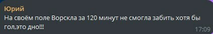 Юрий: На своєму полі Ворскла за 120 хвилин не змогла забити хоча б гол, це дно!!!