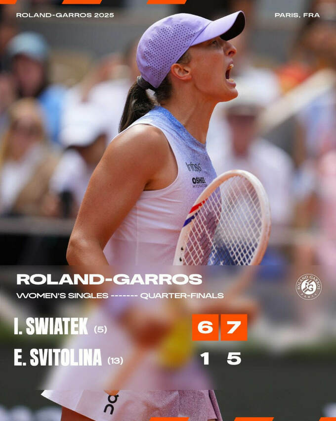 Іга здобула 26-ту перемогу поспіль на Ролан Гаррос. За останні п'ять років вона чотири рази ставала чемпіонкою в Парижі. Для Свьонтек це буде п'ятий півфінал за шість років у столиці Франції. Що стосується турнірів Grand Slan, то Іга проведе восьмий півфінал і побореться за шостий фінал.