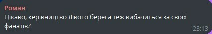Роман: Цікаво, керівництво Лівого берега теж вибачиться за своїх фанатів?