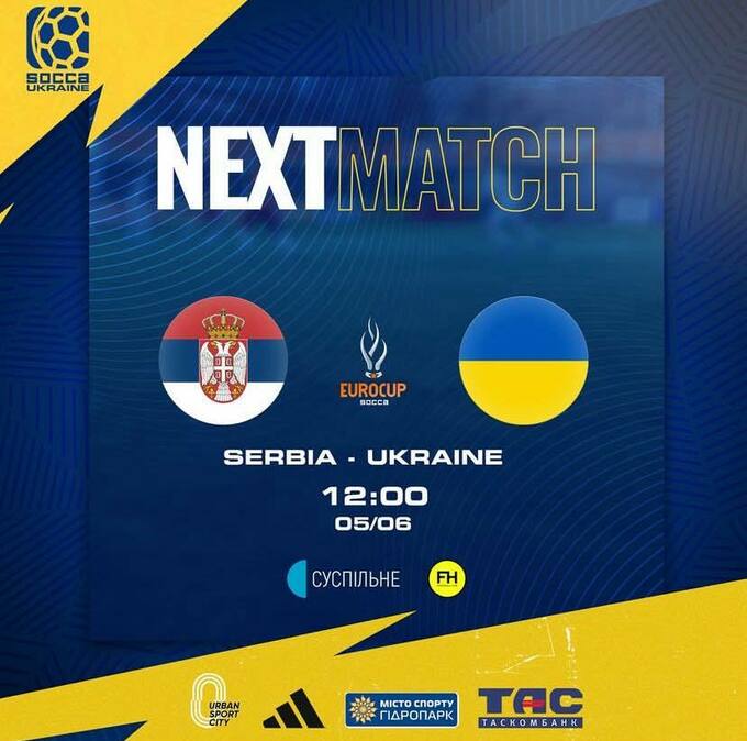 5 червня о 12:00 проходить матч 2-го туру ЧЄ-2025 із socca між збірними Сербії та України.