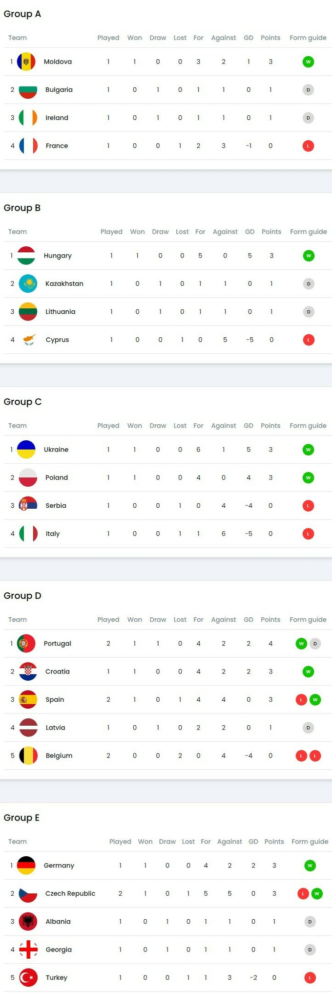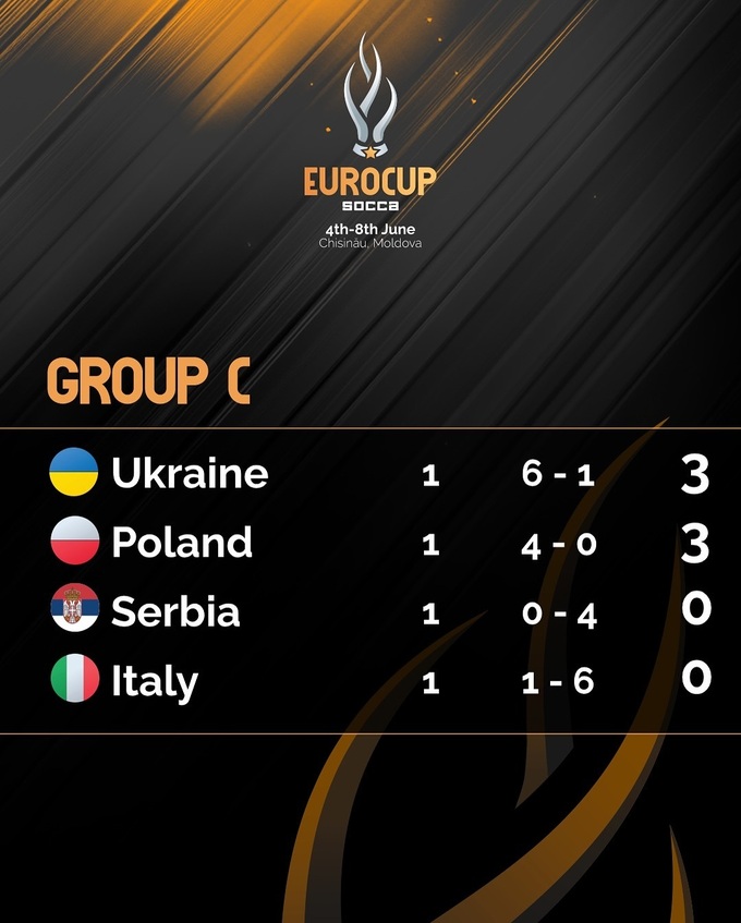 Турнірне становище в групі C: Україна, Польща (по 3 очки), Сербія, Італія (по 0).