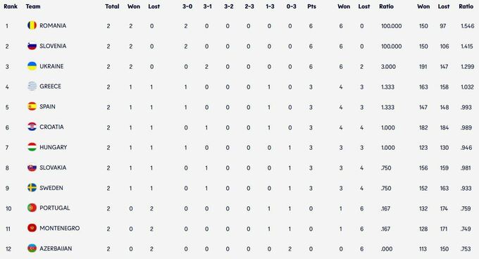 Результативність українок за підсумками двох сетів: Артишук - 14 очок, Мелюшкіна - 9, Димар - 7, Міленко - 6, Котар - 4, Шаргородська - 1
