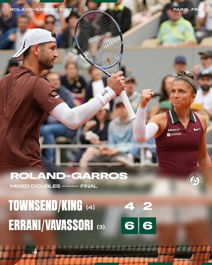 Італійські тенісисти Сара Еррані та Андреа Вавассорі стали переможцями Ролан Гаррос 2025 у змішаному парному розряді.