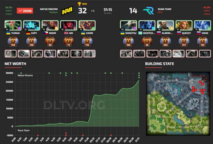 Матч завершився з рахунком 2:0 на користь Natus Vincere.