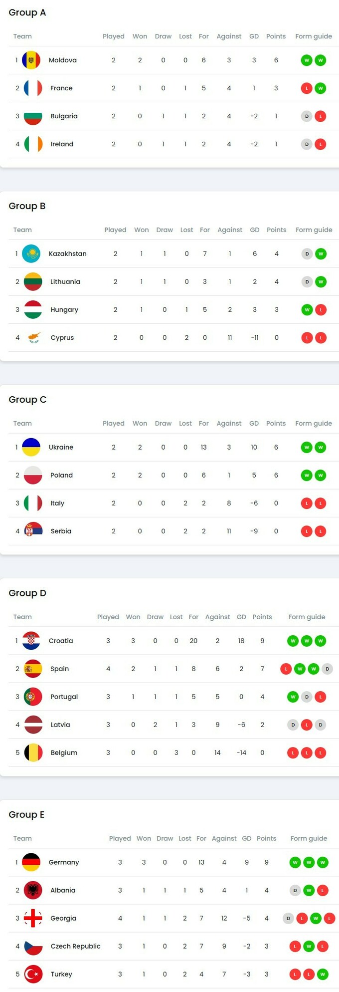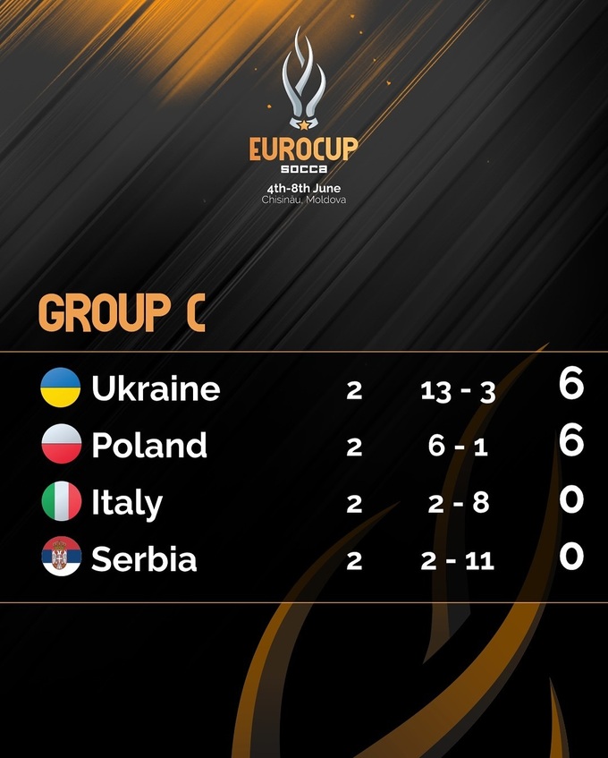 Турнірне становище в групі C: Україна, Польща (по 6 очок), Сербія, Італія (по 0).