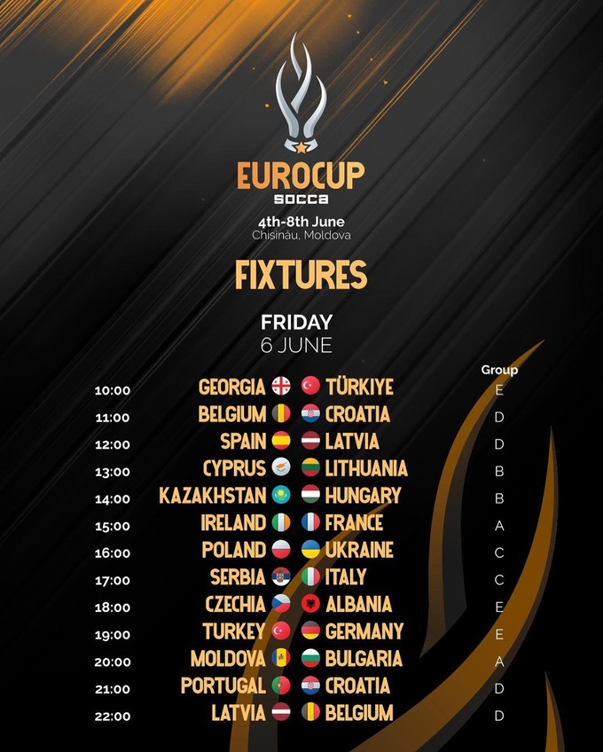 6 червня о 16:00 проходить матч 3-го туру ЧЄ-2025 із socca між командами Польщі та України.