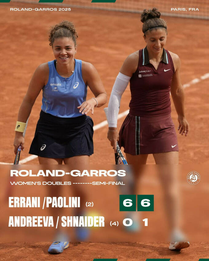 Італійські тенісистки Сара Еррані та Жасмін Паоліні вийшли у фінал парного розряду на Відкритому чемпіонаті Франції 2025.
