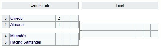 У першому півфінальному матчі за вихід до Ла Ліги Расінг Сантандер та Мірандес зіграли в результативну нічию (3:3).