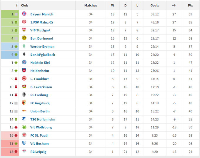 Зверху тотожна з фактичною таблицею Бундесліги ситуація, де «Баварія» розриває. Вже не так сильно, як з урахуваннями тих же голів Кейна, але все ж. Бо ті ж Мусіала та Сане (більше 10 голів у Б1 у кожного) – німці, Гнабрі, Горецка та Кімміх (по 3+) – також. Але усього цього багатства мюнхенцям не вистачило для того, щоб стати найкращими за забитими голами! Лідер – «Майнц». 6 з 7-и його топ-бомбардирів у чемпіонаті – місцеві виконавці. До речі, команда довгий час боролася за місце у ЛЧ та зіграє у ЛК наступного сезону – можна буде притопити за неї та її патріотичний підхід до побудови складу. Серед групи лідерів у цій таблиці найцікавіший – «Хольштайн». 47 набраних очок та місце у топ-7 тут – 25 балів та зона вильоту у реальній таблиці. Новачок ліги мав склад зі значно меншим відсотком легіонерів (38%), аніж по чемпіонату у середньому (54%) – і поплатився за це. Місцеві не допомогли, бо були тільки-тільки з Б1 – не потягнули.