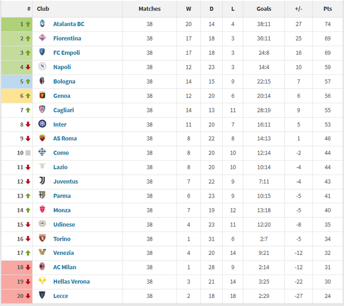 Ну нарешті «Аталанта» виграє титул! Поки що лише тут, однак все одно приємно. Здавалося б, нелогічно: вимоги тренера Гасперіні специфічні, тож правильніше було б шукати футболістів для нього не лише в Італії… Однак знаходили і тут, як бачите. Хоча, звісно, є чит-код – Ретегі. У цій таблиці «Аталанта» має 38 забитих, з яких аж 25 – м’ячі форварда. До речі, тільки 2 клуби Серії А забили більше голів усіма своїми італійцями, аніж Ретегі. Ви розумієте, наскільки Матео тепер важливий для країни, чемпіонату та збірної? Більше за Ретегі забили ногами та не тільки місцеві у складах «Фіорентини» та, дуже неочікувано, «Кальярі». Тож можемо порадіти: перша пробилася до єврокубків, останній уникнув вильоту. Отже, завдання на сезон вирішили – віра в італійців не була даремною. «Наполі» тут тільки 4-й, «Інтер» – лише 8-й. Якби не легіонери, обидві команди ні за який титул боротьби не вели б.