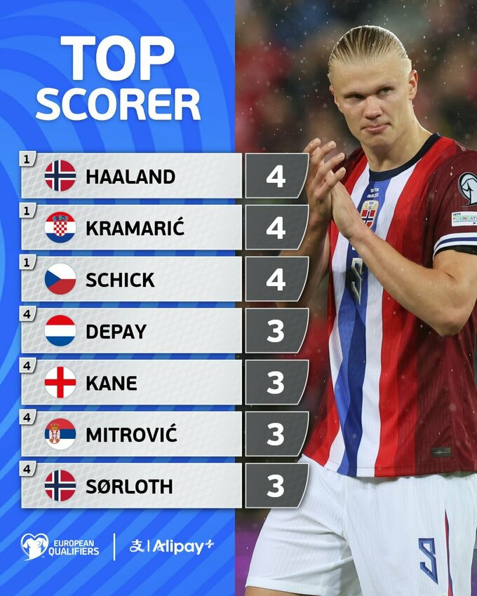 Найкращі бомбардири турніру – Ерлінг Холанд із Норвегії, Андрей Крамарич із Хорватії, Патрік Шик із Чехії (по 4 забиті м'ячі).