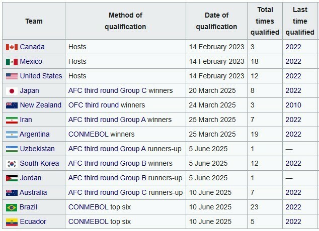 Станом на середину червня стали відомі вже 13 збірних, які достроково гарантували собі участь у фінальному турнірі чемпіонату світу 2026.